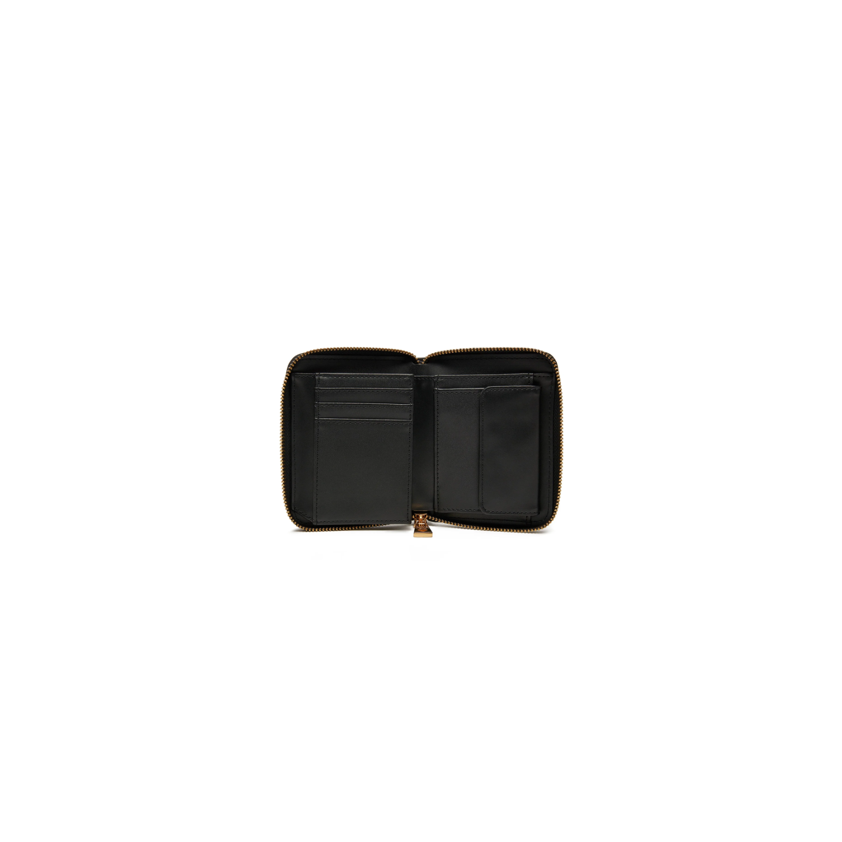 I dettagli raffinati, il logo lettering in galvanica oro sul davanti e le piccole dimensioni lo rendono un accessorio versatile e comodo. La chiusura con zip garantisce sicurezza, mentre l'interno presenta una tasca portamonete, una tasca per banconote e diversi slot per carte, perfetti per un'organizzazione pratica e sofisticata.